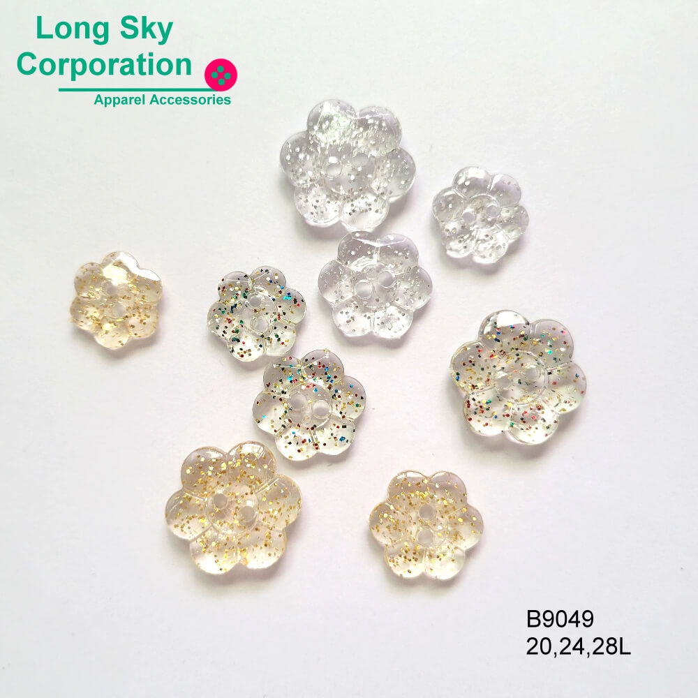(B9049/20, 24, 28L) 2 hole flower glitter button for dress