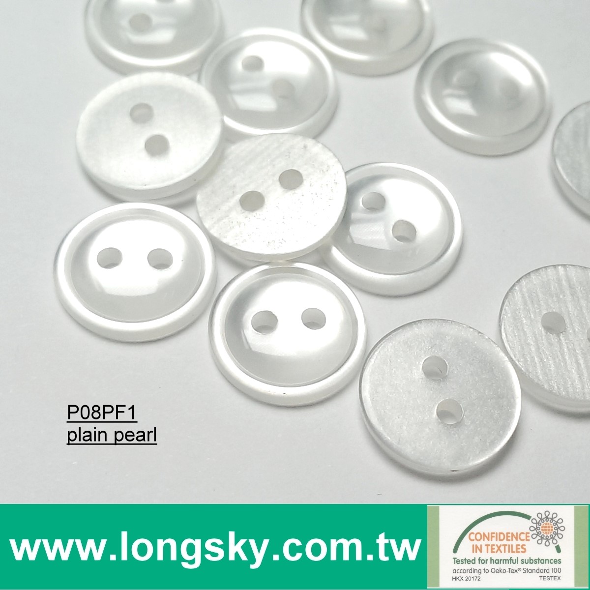 (P08PF1) Two Holes Round Plain Pearl Polyester Button for blouses
