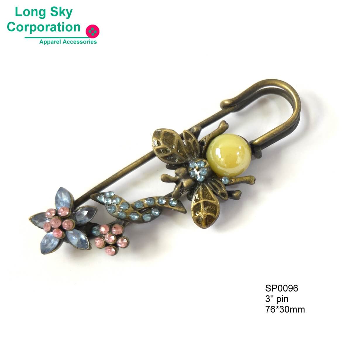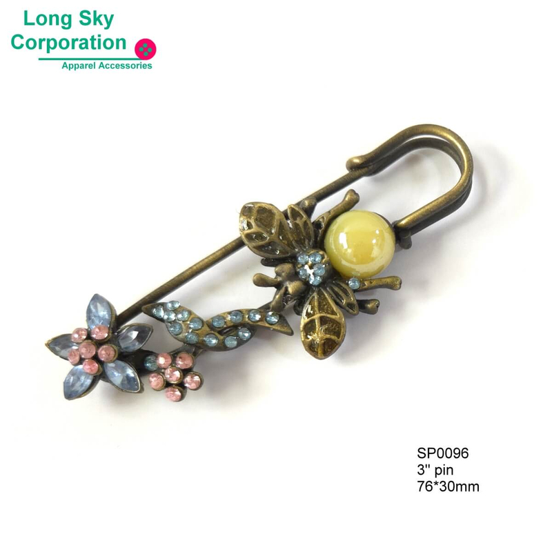 (SP0096) antique brass butterfly and rhinestone flower decorated safety pin